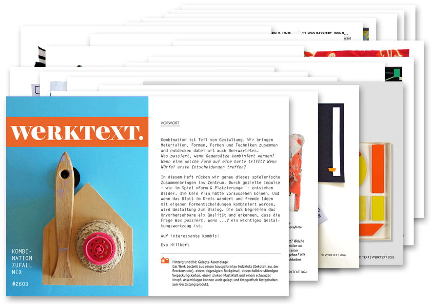 Kombination ist Teil von Gestaltung. Wir bringen Materialien, Formen, Farben und Techniken zusammen und entdecken dabei oft auch Unerwartetes. Und wir erkennen, dass die Frage «Was passiert, wenn ...?» ein wichtiges Gestaltungswerkzeug ist. Wir spielen mit Gestaltungselementen, bedrucken einen Stoff und geben einem anderen neue Eigenschaften. Wir kombinieren u.a. Textstreifen und erarbeiten einen Strickmix, erspielen uns die Motive für ein Muster. Das Heft enthält neben den Gestaltungsideen begleitendes Kontextmaterial und Hinweise für den Unterricht.